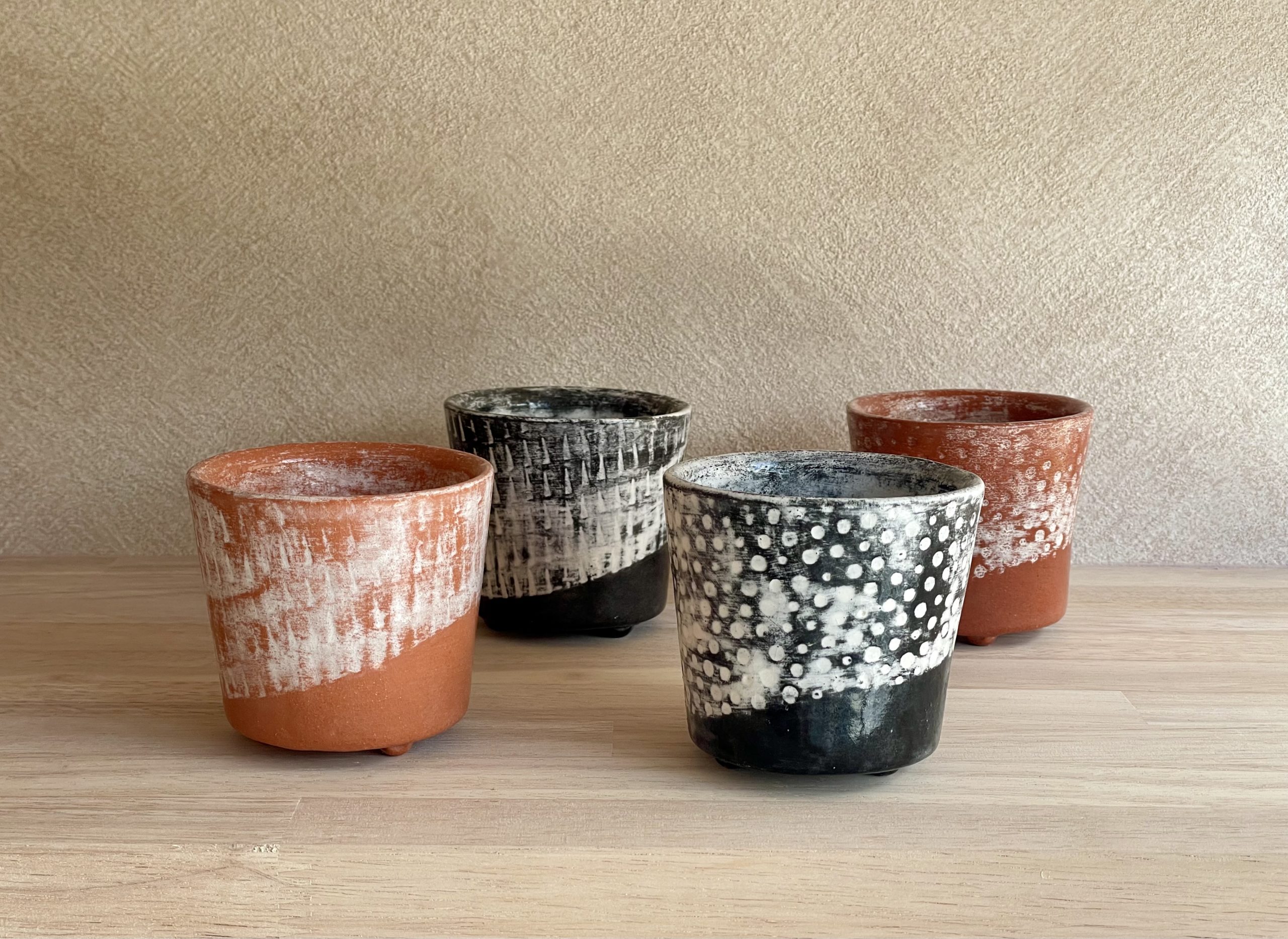CUPは楽焼の特性である断熱性を活かした商品で、熱い飲み物も手で包み込んでお持ち頂けます。