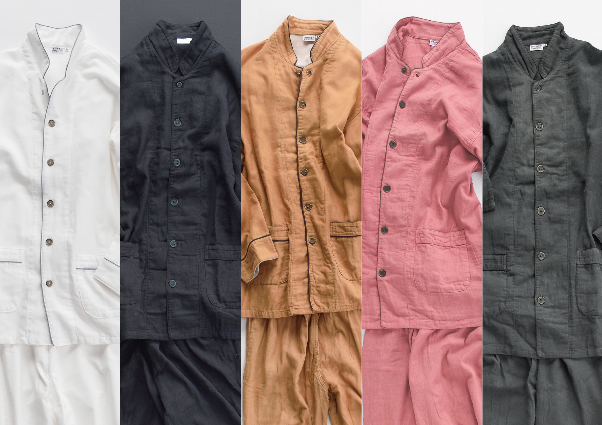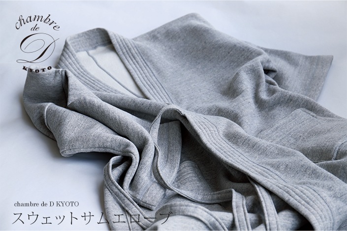 環境に配慮した リサイクルコットンを利用したサスティナブルな素材を採用。日本の作務衣(さむえ)をベースにデザインしました。表地は、上質感のある柔らかな肌触り。裏地は、起毛になっており保温性が高く、秋口や寒い日でも暖かく着用していただけます。腰ヒモを結べばハーフコートとして、また、着流してロングカーディガンとしてオールシーズンご愛用いただけるので、館内着にも最適です。