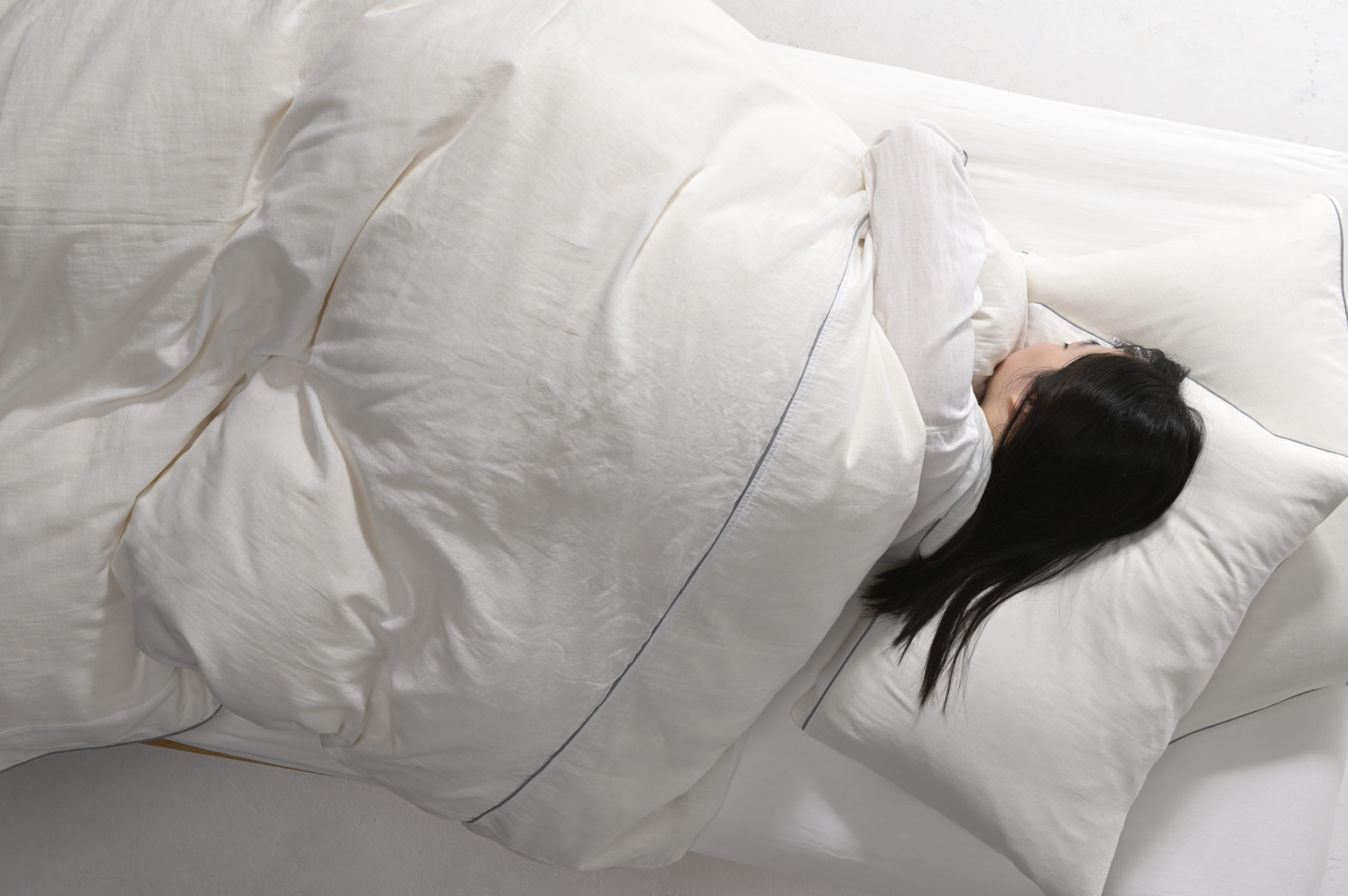 京和晒綿紗ベッドリネンは手作業での縫製にこだわり、ガーゼをお菓子のパイのように重ねて空気の層を作ることで、吸湿性、通気性、保温性を高め、上質な睡眠環境の実現をサポートします。冬は空気層が体温を閉じ込めて、朝まで温かく、夏は汗を素早く吸い取って瞬時に発散し、サラサラな肌触りを保つので、一年を通して快適にお使いいただけます。ボックスシーツから枕カバーまで幅広いラインナップを用意しています。