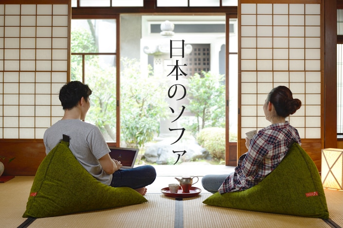 座ると自然に背もたれが立ち上がり、深く腰掛けてゆったりと身を任せることができます。姿勢を変えるたびに中のビーズ素材が体に寄り添うようにフィットし、やすらぎへと誘う…