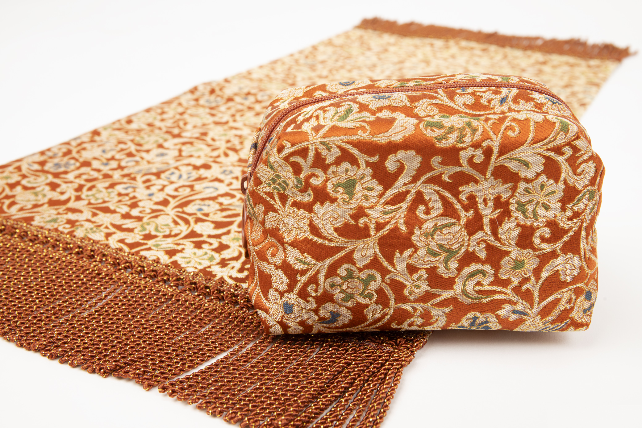 当社のシルクジャガードファブリックシリーズの重宝裂を使用したポーチです。