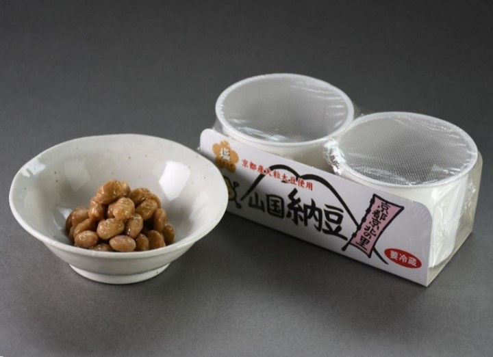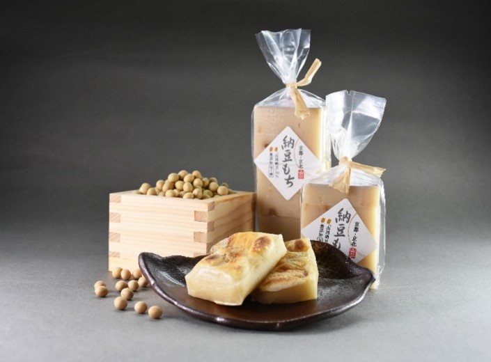 京都市京北産大豆と米を加工してます。山国納豆を餅に突き込み、塩で味付けしました。