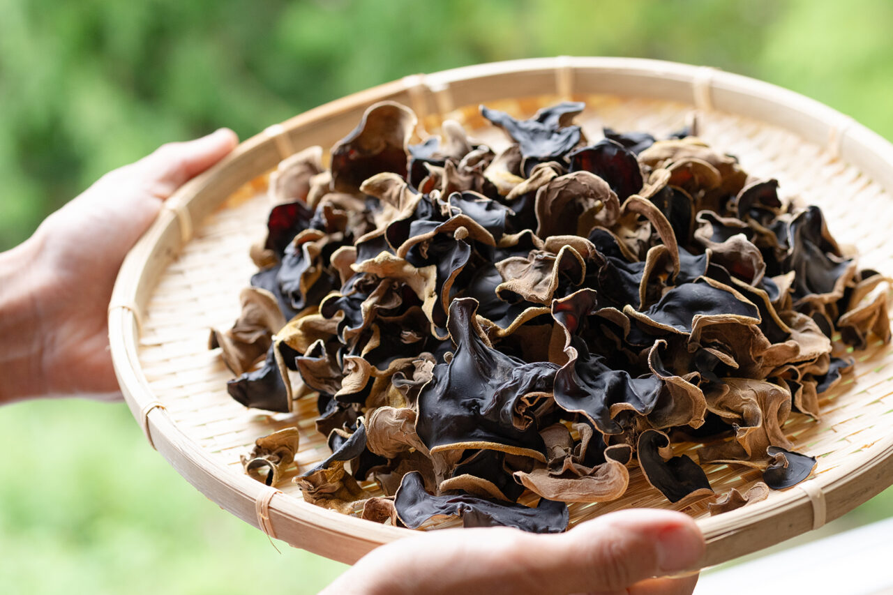日本産落葉広葉樹を原料にした国産菌床を用いてを自然豊かな京北で一枚一枚大切に育てています。肉厚でボリューム感があり、プリプリとみずみずしく、コリコリと歯ごたえのあるきくらげを丁寧に乾燥しました。