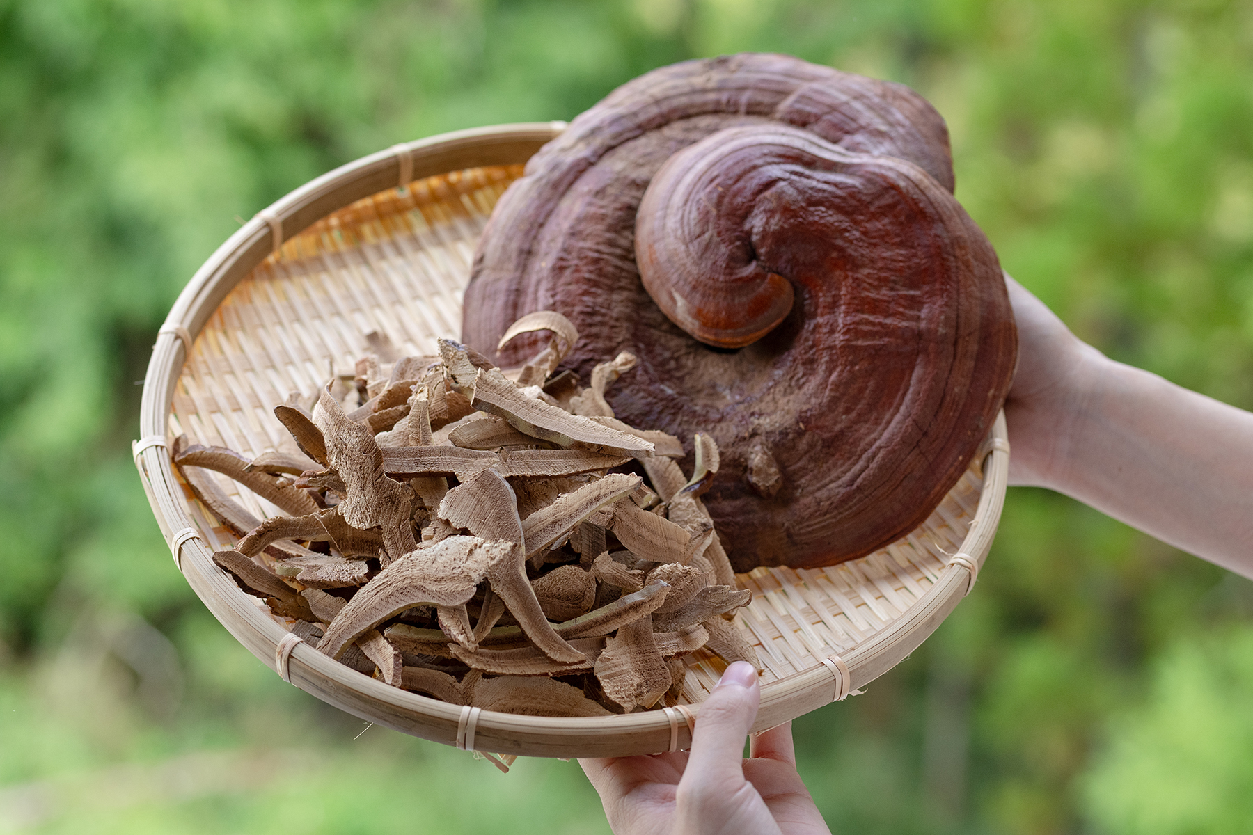 唯一無二の最強きのこ。弊社が右京区京北にて栽培した原木霊芝が「京てずま」です。原木の養分をじっくり食べて育っている霊芝ですので、天然物に限りなく近い力強さが特徴です。最大直径30cm程度にもなるほど傘が大きくなることもあります。他のきのことは段違いで健康的な期待が高いとされています。納入価格(税抜)@4900/100g(配達送料別途)