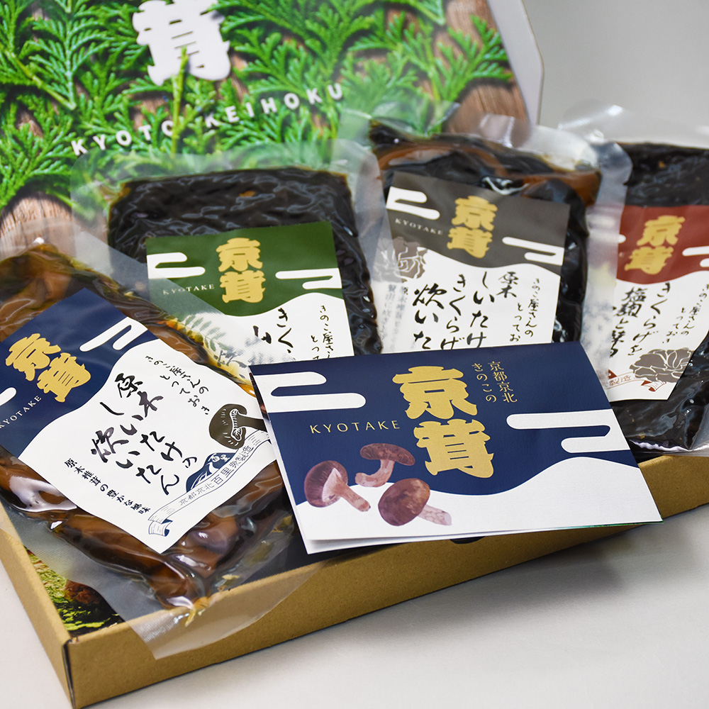 農家が心を込めて育て炊き上げたこだわりのきのこのおばんざい4種を詰め合わせたBOXセット。素材の旨みをいかした、手作りならではのやさしい味わいが魅力。大切な方への贈り物におすすめです。内容:原木椎茸の炊いたん、原木椎茸と木耳の炊いたん、木耳の山椒の炊いたん 、木耳の塩麹と辣油で炊いたん。