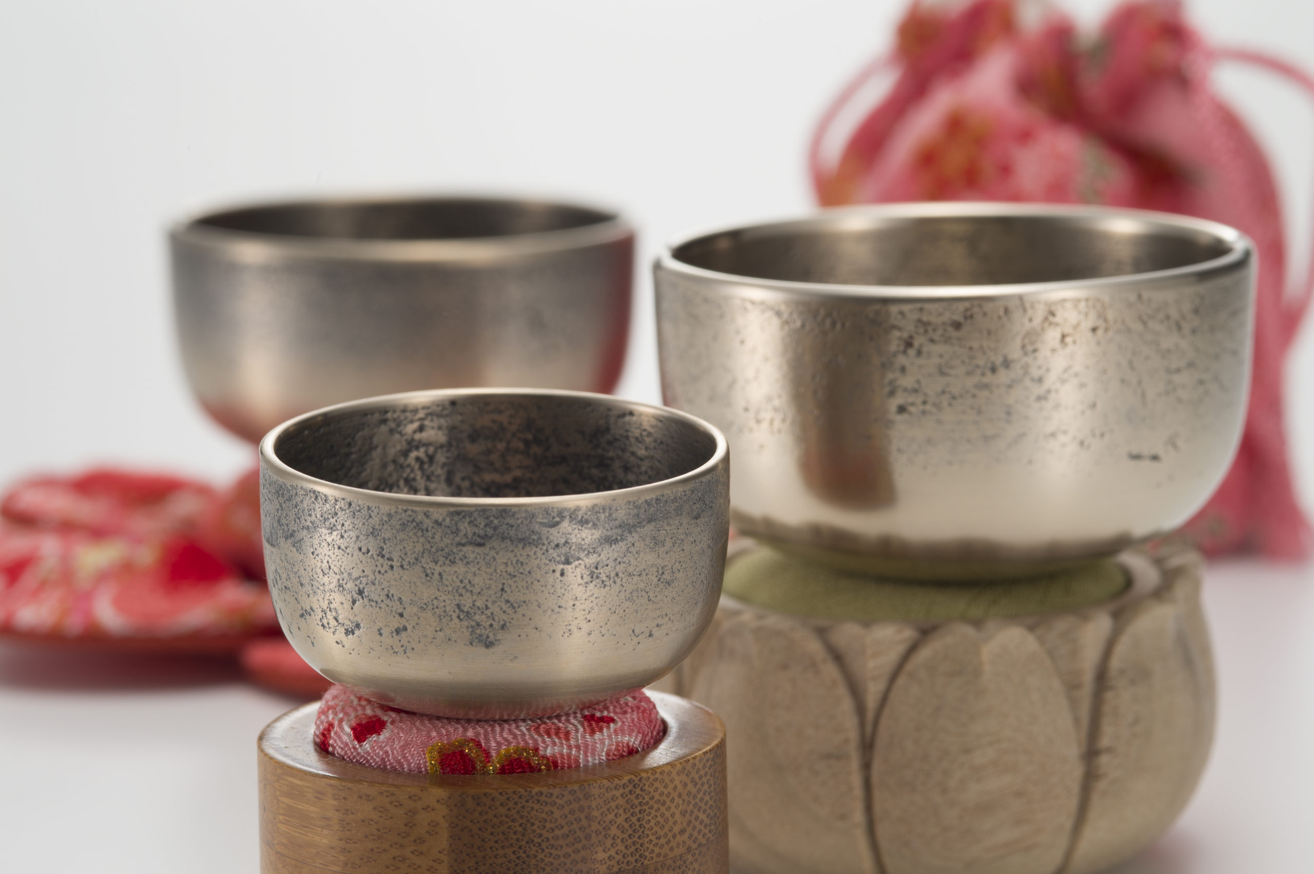 二方屋は享和四年(1804)以前の創業以来、京都の地で伝統の金属素材・秘伝の古来技法を変えることなく伝承し続け、現在も鳴金物専用工房として音に深くこだわったおりんを1つ1つ丁寧に製造しています。おりんは最小サイズ直径一寸二分(約35㎜)から御座います。おりんの他にヨガ瞑想や呼び鈴、風鈴、お守りとしてなど様々な用途に使われています。美しい音色に関する商品をお探しの方は是非お気軽にご相談ください。