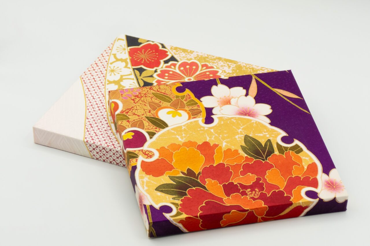 京友禅は華やかで多色な印象がありますが、「伝統の柄の良さ」を感じていただきたくあえてモノトーンに仕上げました。絹の「上品な風合い」や色あせることのない「美しい伝統の色柄」が年齢を問わず長くお楽しみいただけます。上代 3,300円/個(税込)から