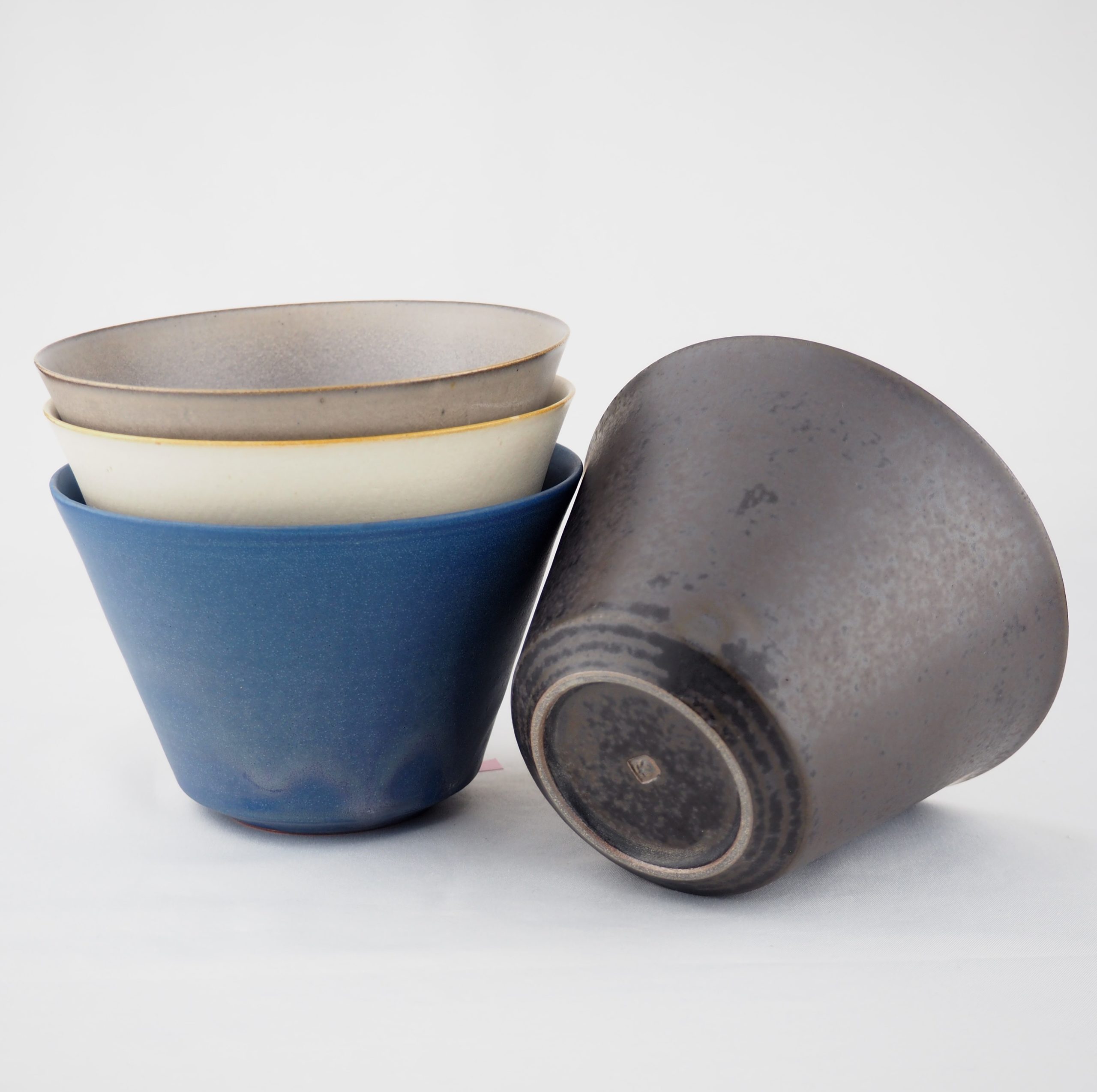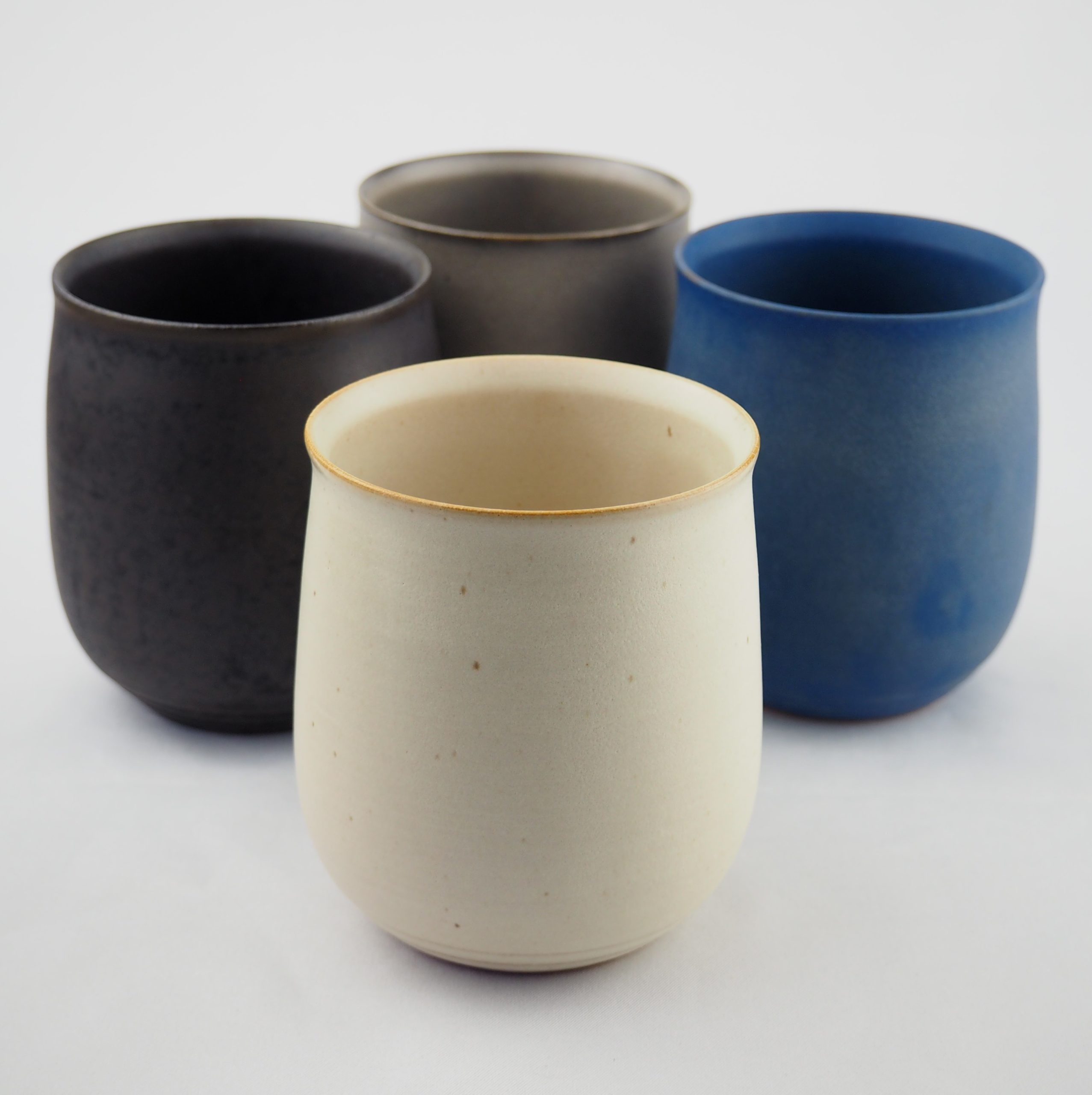 ふっくらした形が可愛らしいフリーカップ。しっくりと手によくなじむろくろ引きならではのフォルムで思わず両手のひらで包み込みたくなるカップ。サイズ違いでご夫婦やカップル、ギフトとしてもお使いください。