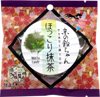 京土産に最適な京の飴。賞味期限も長く、個包装されているため手を汚さずお召し上がりいただけます。商品ラベルに使われている材料のイラストを配置していることで外国の方にも何の種類の飴か分かりやすくなっています。フック穴がついているため、吊り下げでも棚置きでも陳列できます。(上代設定価格300円~350円)