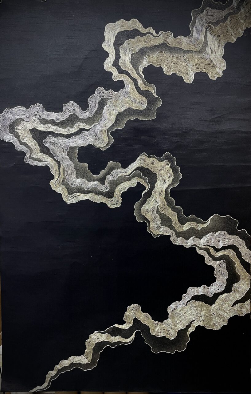 京友禅の金彩工芸技術「金線描き」を用いて描かれたファブリックパネルです。和の色で染め上げた生地に、繊細な金線の輝きを重ね、上質で落ち着きある空間を演出。宿泊施設の客室やロビーを格調高く彩ります。(サイズ現在検討中)