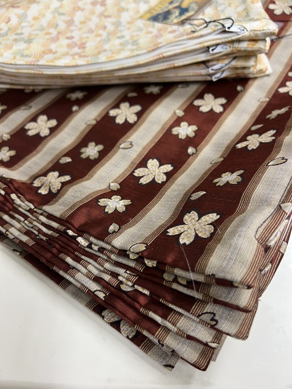 帯2本を合わせ裏表柄の出し方を変えることによりロスなくリバースブルに使えるテーブルランナーです。撥水加工を施すので汚れる心配もありません。またサイズや仕様はお好みでお選びいただけます。