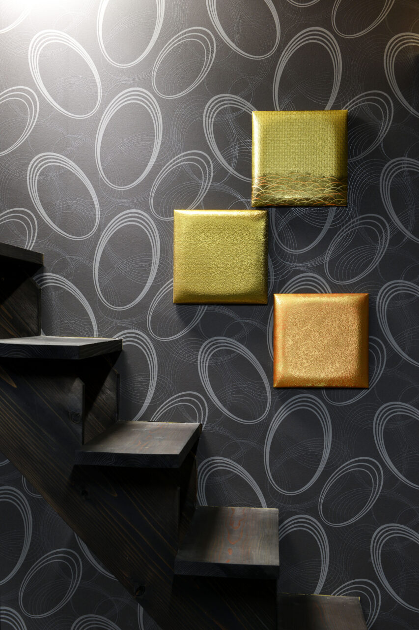 広幅生地を活かし本物の帯地や様々な弊社製造生地を使用し、中には厚さ21mmのウレタンフォームを施しふっくらと手触りも良く優しさを感じるアートボードです。