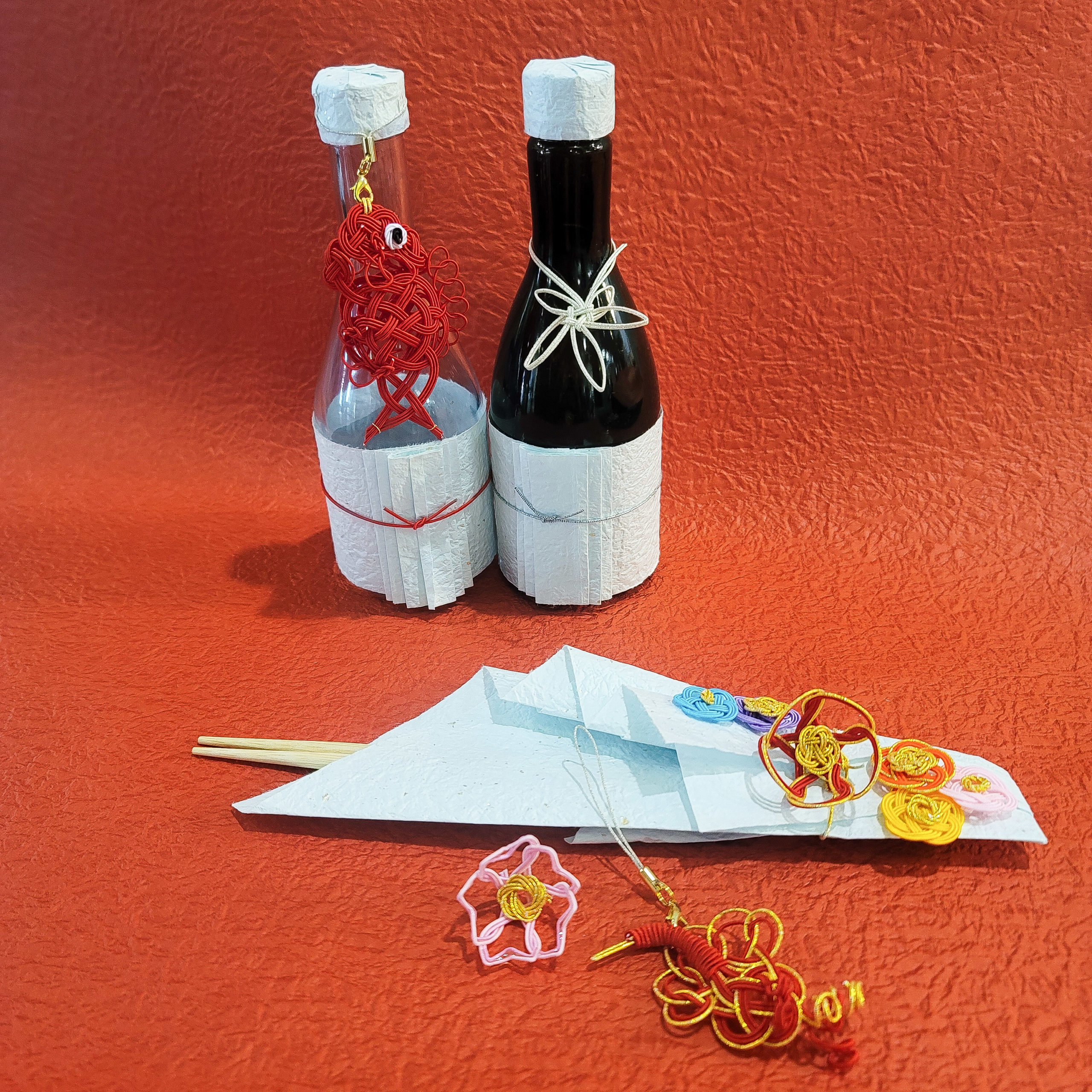 特別な日の箸袋やワインボトル、その他アメニティなどを水引で彩り、お祝いの心を贈ります。