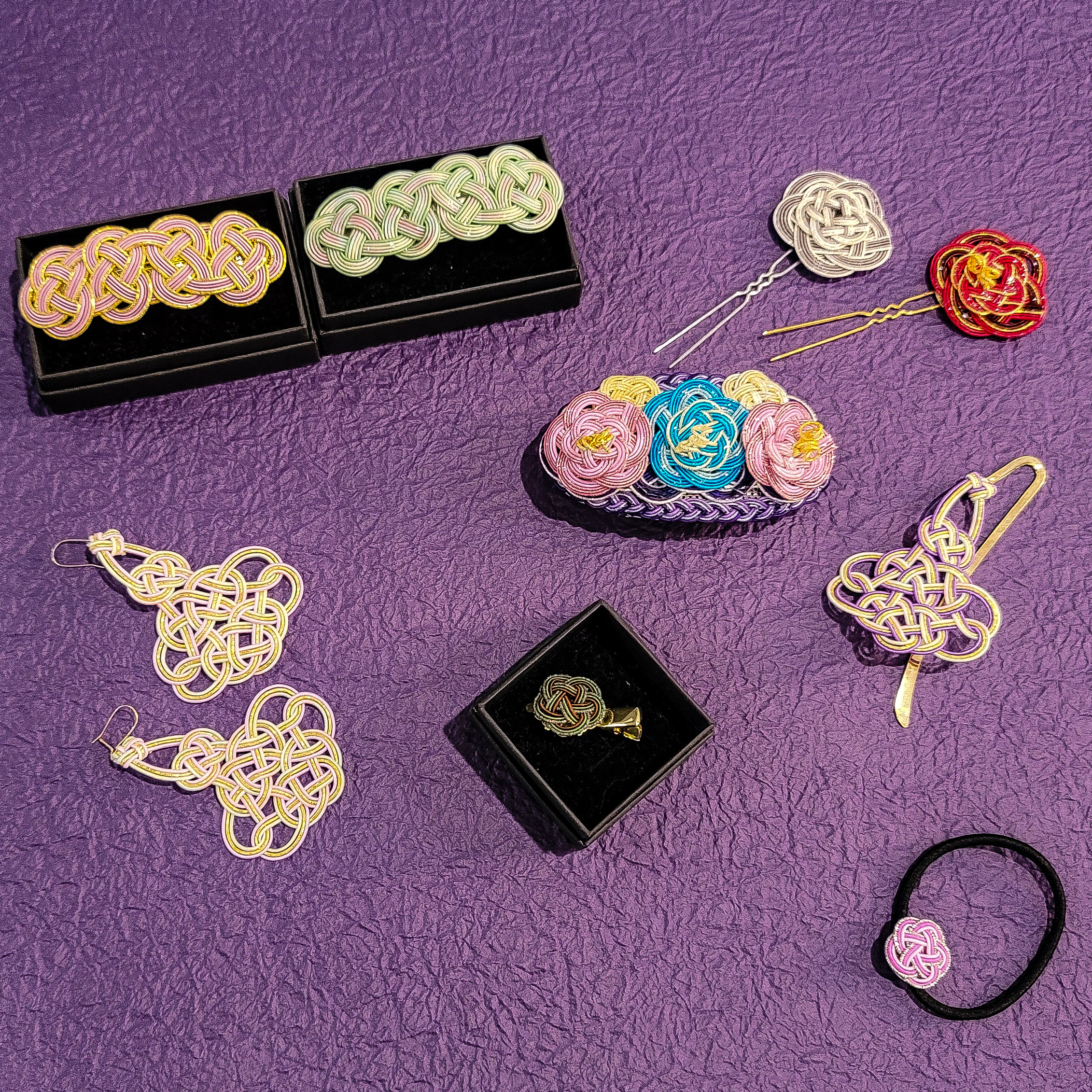 お土産として『相手を想って結ぶ』という意味のある水引は大変喜ばれます。また軽さも利点です。ヘアゴム・バレッタ・タイピンなどの他ブックマークもあります。